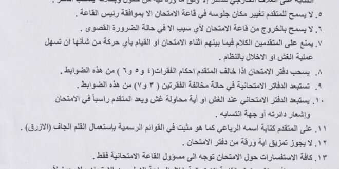 وكشف المعهد القضائي عن الضوابط الخاصة لأداء امتحان الكفاءة القانوني التحريري للدورة (52) دورة القضاة التي ستقام يوم الجمعة الموافق 3 /10 /2025، والدورة (53) دورة الادعاء العام التي ستقام يوم السبت الموافق 4 /10 /2025 في كلية القانون/ جامعة بغداد الساعة التاسعة صباحاً، على أن يكون الحضور عند الساعة السابعة والنصف صباحا لإكمال إجراءات التوزيع على القاعات الامتحانية تمهيداً لأداء الامتحان مع مراعاة عدم جلب الهاتف النقال أو الساعة الذكية داخل القاعات الامتحانية.