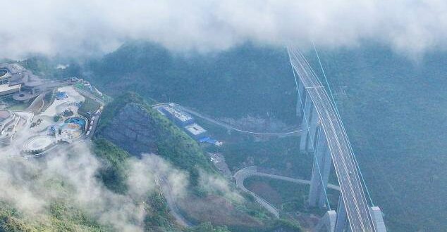 الجسر العملاق يمتد فوق وادٍ عميق، ويساهم في تقليص زمن السفر بين ضفتيه من ساعتين كاملتين إلى دقيقتين فقط، مما يجعله إنجازاً هندسياً ومعمارياً يعكس قدرات الصين في مشاريع البنية التحتية الضخمة.